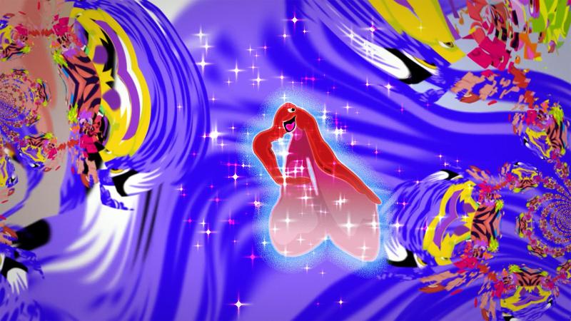 Clits day begins with bad news and an unpleasant appointment to be examined again. Meanwhile, her body-sharing community of Brain, Spinal-Cord, and Prostate is thrilled by the video “Wet Cat at the Pool,” which has just won the Pussi Award. This only upsets Clit even more, who has to admit to herself that she is jealous. Attracted by glamour and fame, she finally lets the Cheshire Cat (aka Magic Vulva) lure her into the queer ballroom wonderland, where she encounters herself and discovers her true greatness.